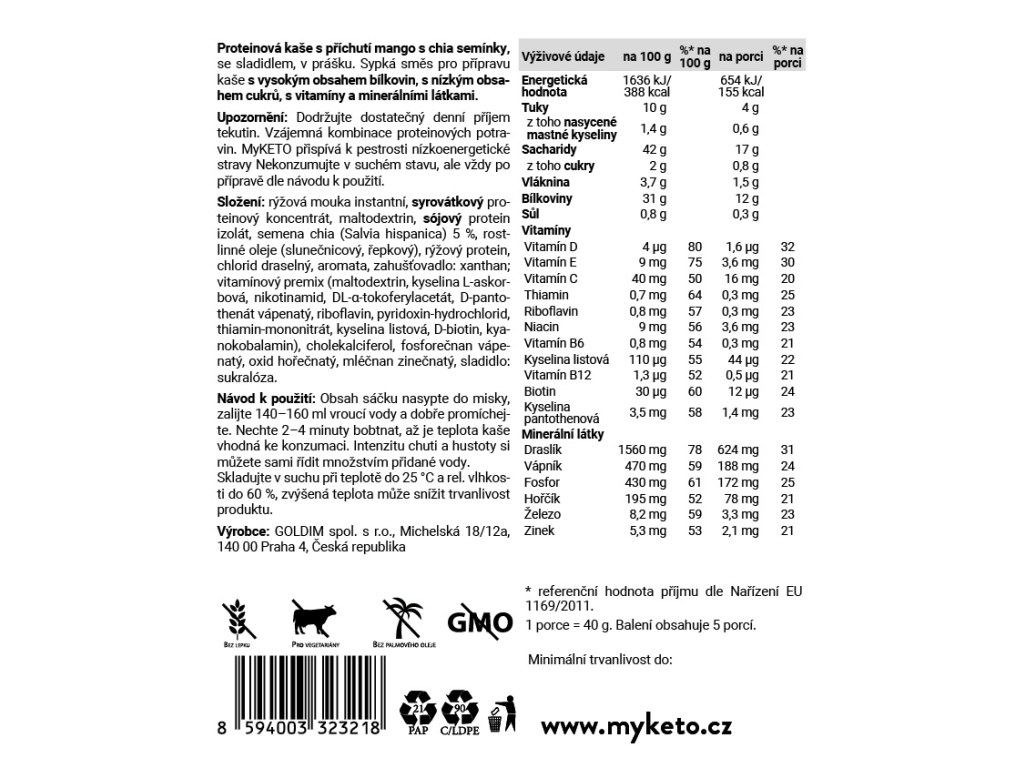 MyKETO Proteinová kaše s příchutí mango s chia semínky 5 porcí